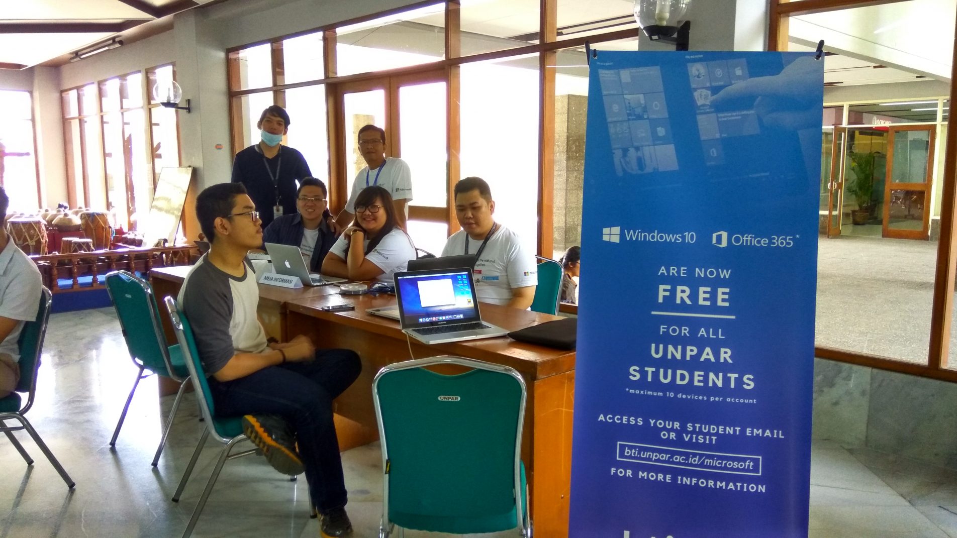 Pada tanggal 7-11 Nopember 2016, Biro Teknologi Informasi Universitas Parahyangan mengadakan kegiatan install Windows 10 Edu dan Office 365 untuk mahasiswa Universitas Parahyangan. Kegiatan tersebut dilakukan di lobby Rektorat dengan membuka booth. Kegiatan ini terlaksanakan atas kerjasama Unpar dengan Microsoft Indonseia sehingga mahasiswa mendapatkan fasilitas berupa Windows 10 Edu dan Office 365 secara gratis. Sejak pertama diselenggarakan, antusias mahasiswa cukup … Read More